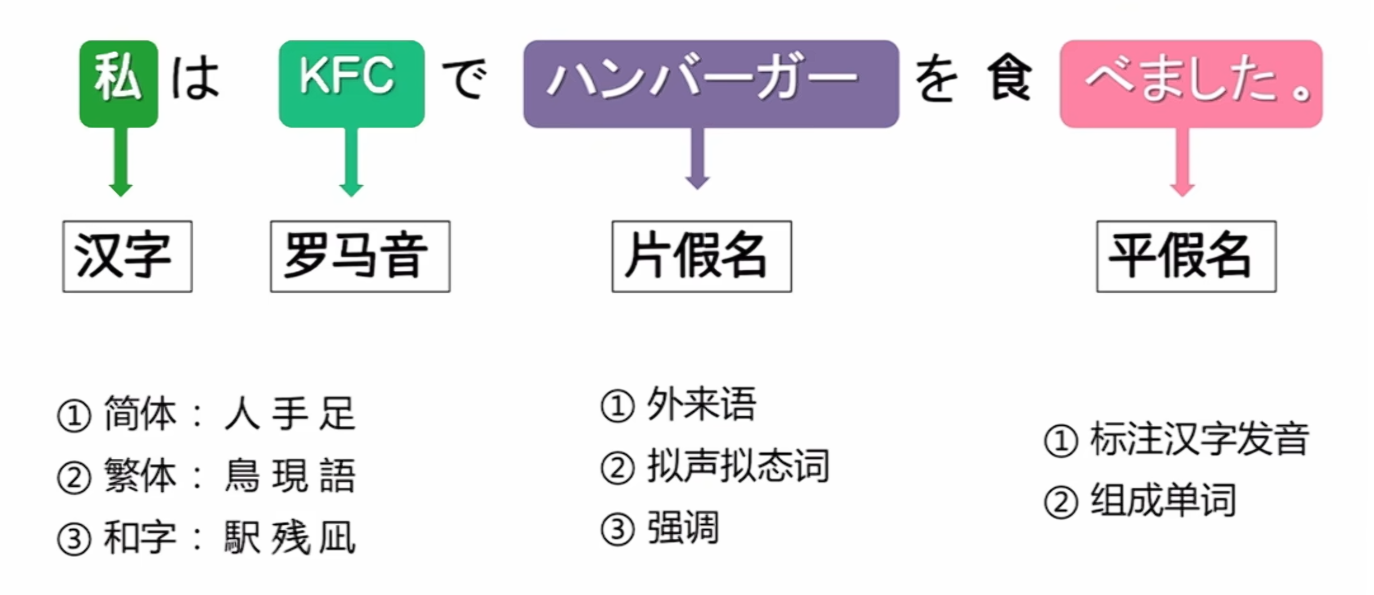 日语的构成是由四个部分,分别是:汉字、罗马音、片假名、平假名
